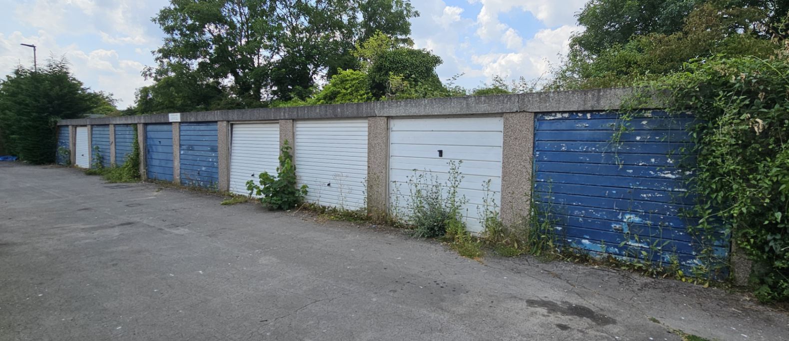 10 lock-up garages and forecourt for sale at auction on 30th and 31st July 2024.