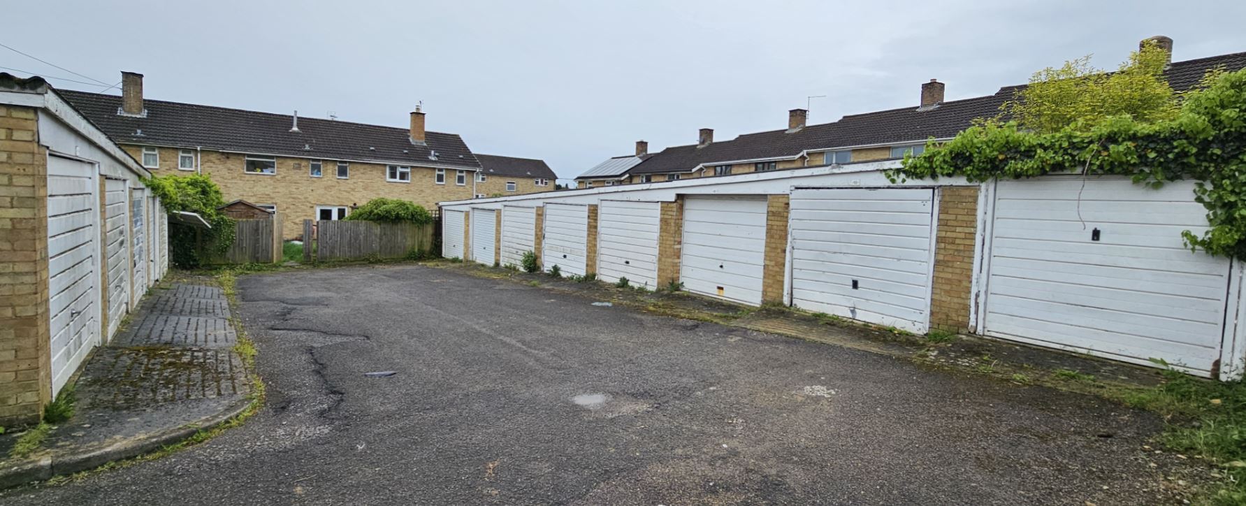 14 garages in two blocks and forecourt for sale at auction on 19th and 20th June 2024.