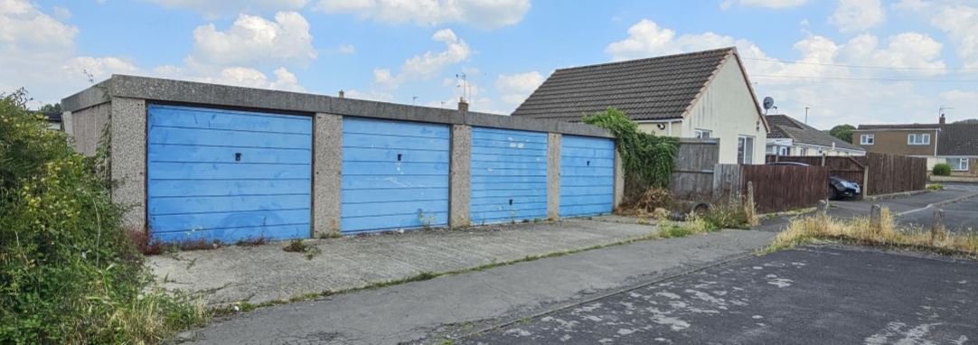 4 lock-up garages and forecourt for sale at auction on 30th and 31st July 2024.