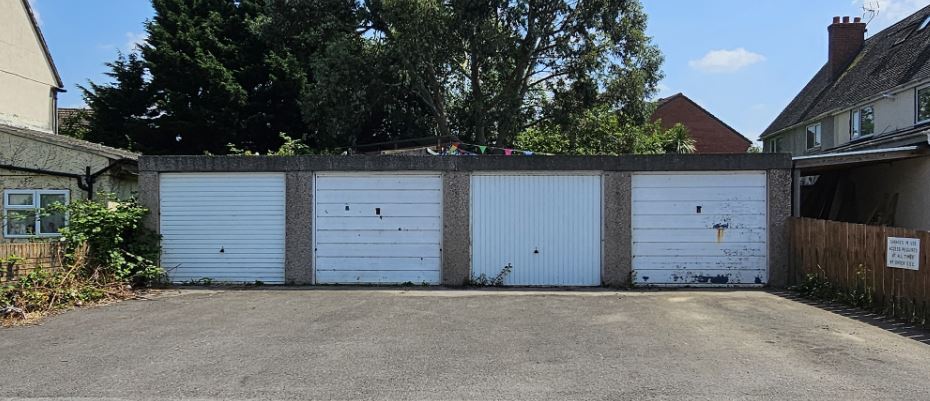 4 lock-up garages and forecourt for sale at auction on 30th and 31st July 2024.
