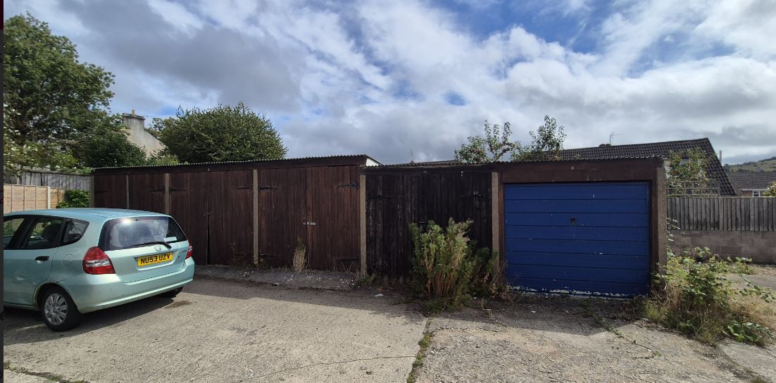 5 lock-up garages and forecourt for sale at auction on 7th November 2024.