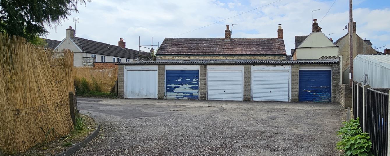 A block of 5 lock-up garages and forecourt for sale at auction on 30th and 31st July 2024.