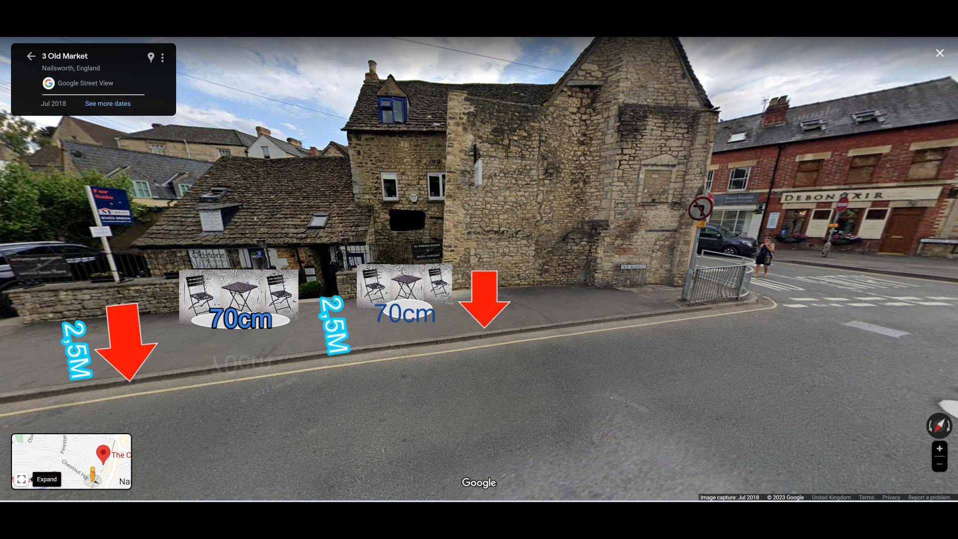 Application for a Pavement Licence to place tables and chairs outside the front of Oldstone Restaurant, Old Market, Nailsworth. The number of tables and chairs applied for in this application are: 2 tables and 4 chairs