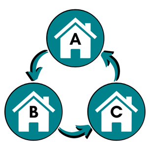 Yes, they can. You can either exchange homes with one tenant, known as a direct exchange, or you could try and find a multi-way house exchange. A multi-way exchange involves more than two households. For example, Household A wants to move to Household B; Household B wants to move to Household C; and Household C wants to move to Household A.